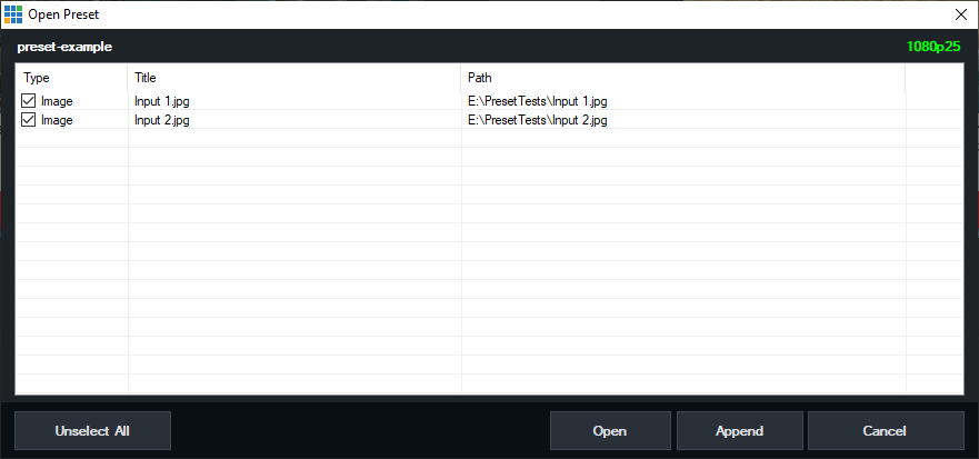 Open Preset opens up a file open dialog where you can select an existing Preset.