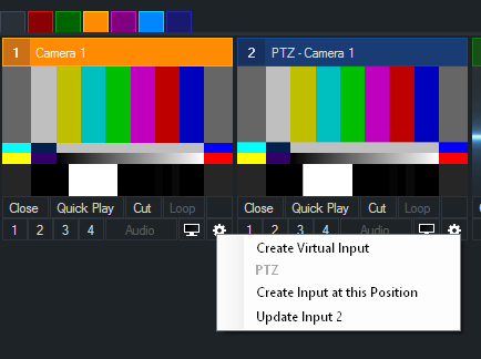 TIP: You can also right click the cog icon underneath the PTZ camera to update any of the PTZ Virtual Inputs without going into Input Settings