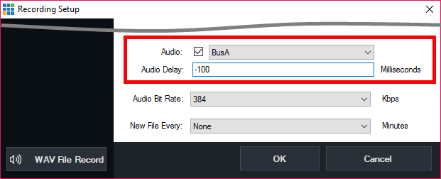 5. A negative audio delay should also be used to compensate for the delay of routing all audio externally.