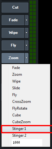 In the main window, select Stinger 1 as one of the four transition buttons in the middle of the screen.